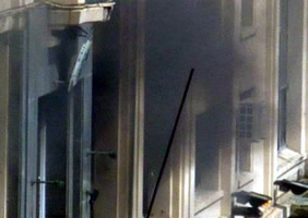 El edificio luce con los vidrios destrozados por la deflagración, y se podían ver daños hasta a cien metros de distancia del lugar. Hubo, además, un incendio desatado por la bomba, por lo que toda la dependencia debió ser evacuada rápidamente y varias dotaciones combatían las llamas.