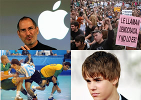Muere el gurú de la tecnología moderna. Indignados se hacen oír en el mundo. Biber enloquece a las chicas. La tele y sus jóvenes 60 años