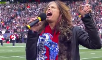En un partido clave de fútbol americano, el líder de Aerosmith fue invitado al centro del campo de juego para cantar, pero desafinó y confundió la letra. El público lo silbó. Vealó