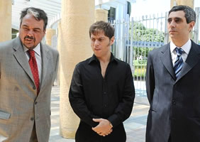 Baratta (der.), representante argentino ante la petrolera, quiso ingresar a una reunión de directorio con Kicillof y Cameron (izq.). No pudieron