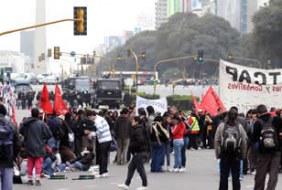 El acampe comenzó el jueves por la tarde y por la noche los manifestantes instalaron unas 30 carpas y ollas populares en el cruce de 9 de Julio y Belgrano, donde permanecerán hasta el mediodía de hoy.