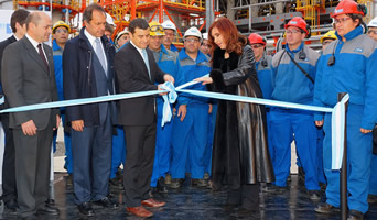La Presidenta Cristina Fernández inauguró hoy la nueva planta de Hidrodesulfuración de gasoil (HTG B), en el Complejo Industrial La Plata. En el acto, que contó con la presencia de gobernadores y distintas autoridades nacionales, provinciales y municipales, el CEO de YPF describió los detalles de la obra y anunció algunos de los logros obtenidos en los tres meses de su gestión.