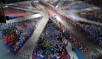 El príncipe Harry fue el representante de la realeza británica en el palco, y -luego- al show musical con Madness (“Our House”), los Pet Shop Boys, la banda juvenil One direction, Ray Davies y Stomp, un grupo de percusionistas. Luego desfilaron los deportistas, abanderados, incluido Sebastián Crismanich, encargado de portar la bandera argentina.