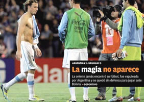 "La magia no aparece". Con cierto enojo y críticas hacia al técnico Oscar Tabárez, medios uruguayos no tuvieron piedad con su selección, a la cual criticaron duro tras la goleada 3 a 0 que le propinó la Argentina en el clásico rioplatense.