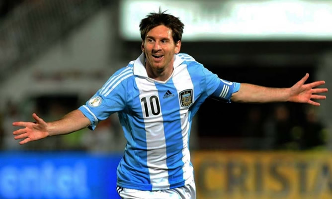Por la fuerza de una delantera temible y la genialidad de Lionel Messi, Argentina continuó su ritmo triunfal en las Eliminatorias Sudamericanas y derrotó en Santiago a Chile 2 a 0, en un resultado que la dejó como único líder de la clasificación regional de cara al Mundial 2014.
