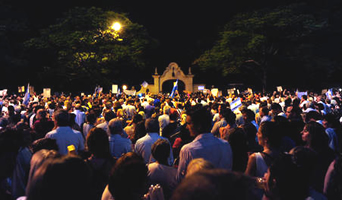 La residencia donde está la jefa de Estado está bien en el corazón del predio y es probable que a pesar de parlantes y mucho ruido no haya llegado mucho de los sonidos de la queja, pero cuando a las 21:00 todas las personas presentes cantaron el himno, el momento más emotivo de la jornada en ese lugar.