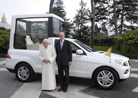 En una ceremonia especial realizada en el Vaticano, el CEO del Grupo Daimler Dieter Zetsche entregó personalmente el Mercedes-Benz Clase M, producida específicamente para el Papa. "Es un honor para Mercedes-Benz acompañar a Su Santidad el Papa Benedicto XVI en sus viajes con nuestro nuevo papamóvil", dijo Zetsche en la entrega del nuevo papamóvil en Roma. "Como tal, continuamos nuestra larga asociación con el Vaticano. Durante más de 80 años, los Papas han podido confiar en la calidad, la seguridad y el confort de nuestros vehículos Mercedes-Benz,” afirmó el CEO mundial de Daimler.