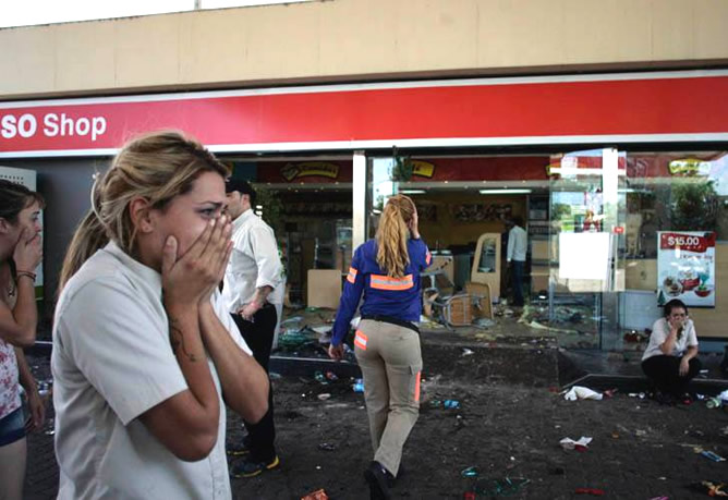 En la retirada, los manifestantes rompieron la estación de servicio Esso y robaron las mercaderías. También saquearon una sodería y dos supermercados chinos de la calle Avellaneda.