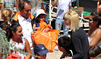 Acompañado por su bellísima esposa Karina Rabolini, Scioli dijo que "es una gran satisfacción compartir con los chicos del barrio de Villa La Ñata este momento tan especial en vísperas de Navidad. Es muy lindo ver cómo los chicos se acercan al deporte. Es un ámbito en el cual se promueve la salud y la educación".