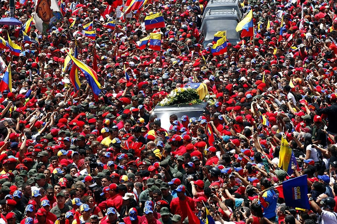Cientos de miles de personas salieron a las calles para seguir y acompañar el cuerpo del presidente de Venezuela. Lo velan en la Academia militar donde se formó