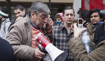 El hombre, que reclama justicia por la muerte de su hija en 2006 en una causa que "no avanza" en Tucumán, fue golpeado por la policía, que no lo dejó acercarse a Cristina Fernández