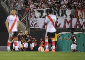 Lanús derrotó a River al ganarle 3 a 1 como visitante y avanzó a las semifinales de la Copa Sudamericana 2013.
