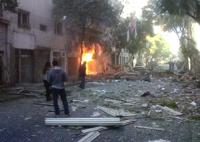 A las 9:38 se sintió una fuerte explosión invadió la manzana, derrumbando el segundo cuerpo del edificio y destruyendo gran parte de los otros dos. Los edificios aledaños también sufrieron las graves secuelas al romperse vidrios, ventanas y puertas.