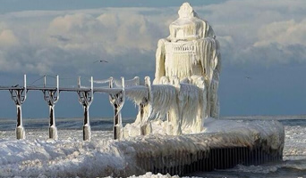 Millones de norteamericanos afrontan un frente frío inédito en 20 años y acompañado de nieve y tormentas de hielo, como ocurre en el faro St. Joseph en Michigan (foto)