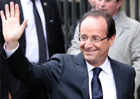El día que ganó las elecciones, el 6 de mayo de 2012, Valerie Trierweiler mandó a poner a todo volumen, en el teatro donde celebraban, la canción de Edith Piaf, "La vie en rose", como un guiño a su relación y a la victoria, mezclando lo íntimo y lo político (la rosa es el símbolo del Partido Socialista).