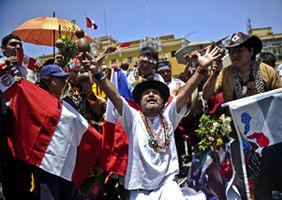 Al grito de "¡Viva Perú!" y "Se ha hecho justicia!", miles de peruanos celebraron en la Plaza de Armas de Lima, frente al Palacio Presidencial, el fallo de la Corte Internacional de Justicia de La Haya que benefició a Perú en su disputa marítima con Chile.