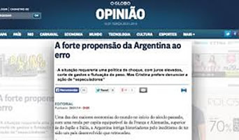 El diario brasileño O' Globo publicó un editorial titulado "La fuerte propensión de la Argentina al error", que analiza de manera severa la realidad del país que conduce Cristina Kirchner.