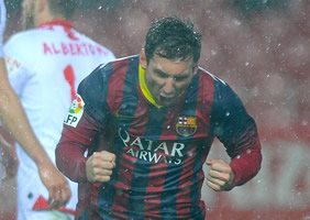 El equipo catalán goleó 4 a 1 al Sevilla de la mano de su máxima estrella. El argentino puso un doblete y entusiasma de cara a Brasil 2014