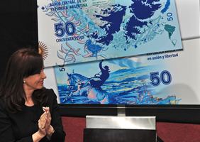 El gobierno dijo que el billete constituirá un "reclamo pacífico en un elemento soberano por naturaleza como lo es el billete de curso legal".