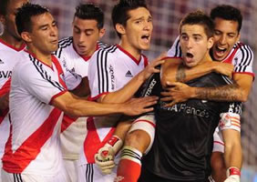 En el Monumental, venció 3-2 a Racing. Sobre la hora, el arquero local le contuvo un penal a Saja. El otro protagonista de la tarde fue Cavenaghi