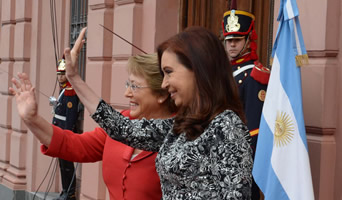 LAa presidenta Cristina Fernández recibió este mediodía a su par de Chile, Michelle Bachelet, con el propósito de fortalecer las relaciones bilaterales y de abordar una cargada agenda de temas.