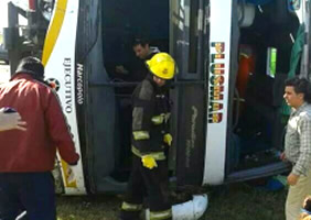 Bomberos y defensa civil trabajaron en el lugar. El accidente se produjo a 6 kilómetros de Chascomús. Hay 30 heridos, algunos graves