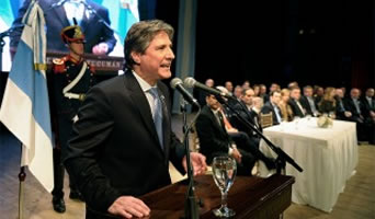 Habló en representación de la presidenta Cristina Fernández, quien parece dispuesta a inmolarse por él si es necesario, y ordenó a todo el gabinete asistir al acto por el 9 de Julio