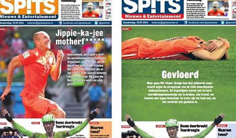 Los editores del diario Spits no pudieron aguardar hasta que Maximiliano Rodríguez vulneró el manotazo de Jasper Cillessen y selló el 4-2 en la tanda de penales.