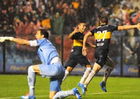 Boca vencía a Racing 1-0 en La Bombonera pero la lluvia obligó al árbitro Federico Beligoy a suspender el partido, por la séptima fecha del campeonato de primera división, a los 12 minutos del segundo tiempo.También se suspendió el encuentro entre el puntero River y Arsenal.