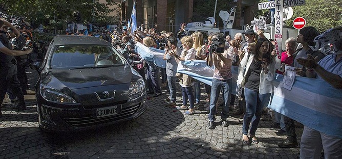 Alrededor de un centenar de vecinos esperaron a metros de la casa velatoria en Núñez que partiera el cortejo fúnebre. Rodeados por un numeroso operativo policial, entonaron el himno y llevaron pancartas con consignas para reclamar Justicia y otras con críticas al gobierno, especialmente contra la titular del Ministerio Público, Alejandra Gils Carbó.