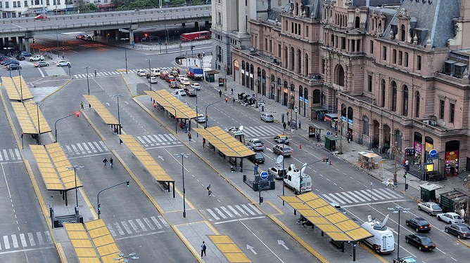 Apenas se veían algunos taxis circulando en el centro porteño y las autopistas mostraban un vacío poco común.