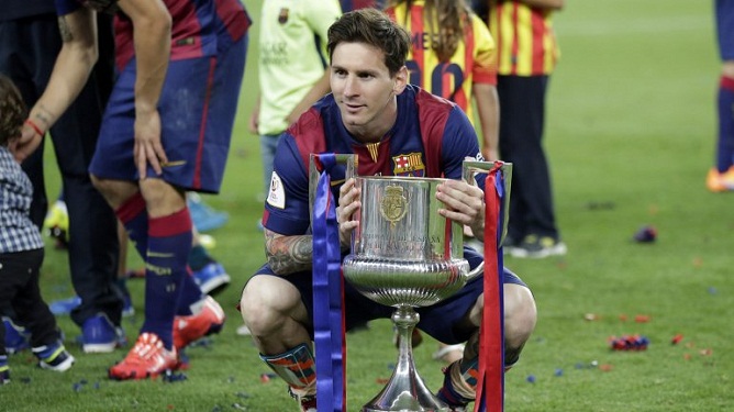 Barcelona ganó la Copa del Rey al vencer 3 a 1 al Bilbao con dos goles suyos. Los liderados por Leo ahora van por la Champions League