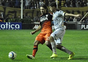A tres del final, River encontró el empate y el desahogo, cuando al Pity Martínez le quedó un rebote fuera del área, le pegó de primera y su remate fue inalcanzable para Champagne. River quedó a tres puntos del líder, San Lorenzo, con un partido menos (ante Tigre por la fecha 13).