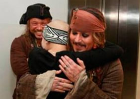 El actor Johnny Deep fue a ver a niños internados en el ala oncológica de una clínica de Australia disfrazado de su personaje más popular