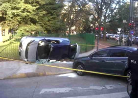 En un accidente que obligó a trasladar a su mujer en un helicóptero, el ex futbolista de la selección chilena Iván Zamorano volcó tras impactar contra otro vehículo en avenida del Libertador y Casares, en el barrio de Palermo.