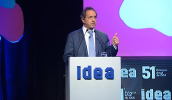 Al hablar en la inauguración del 51 Coloquio Anual de IDEA, Scioli destacó la "voluntad empresarial para comprometerse con el futuro del país, que es clave para que podamos integrarnos cada vez más, con el comercio, la industria, el campo y la construcción para encarar juntos la etapa que se viene".
