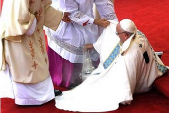 El papa Francisco sufrió este jueves una caída cuando caminaba hacia el altar para presidir una misa en el santuario de Jasna Gora, en Czestochowa, Polonia. La caída no fue grave, pero el Sumo Pontífice tuvo que ser levantado por el grupo que lo asiste, luego continuó con la celebración.