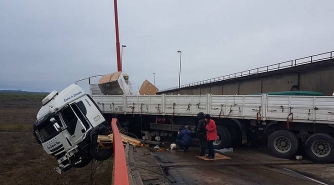 El camión había quedado colgado de uno de los puentes del complejo Zárate Brazo Largo esta madrugada fue retirado sobre las 12.30.
