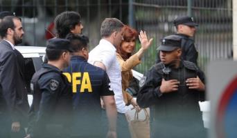 La ex presidenta dejo el cuarto edificio de Comodoro Py por una puerta lateral que da hacia Retiro, bajó en el ascensor hasta el subsuelo y allí salio caminando al encuentro de los militantes y ex funcionarios de su gobierno.