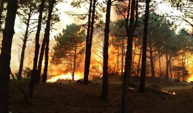 Los bosques de Cariló fueron ganados por las llamas este mediodía, y ya son al menos 15 dotaciones de bomberos las que trabajan en el lugar intentando detener el avance del fuego.