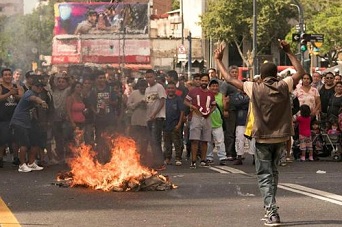 Pasado el mediodía, y pese al intento de desalojo por parte de la policía, el bloqueo continúa en la intersección de las avenidas Pueyrredón y Rivadavia.