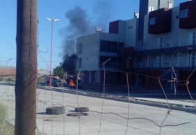 Los sindicalistas decidieron bloquear las entradas al predio con neumáticos prendidos fuego y, según se denunció, no dejaron salir del lugar a un pequeño grupo de empleados de la empresa constructora que trabajaba en el sitio.