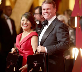 Brian Cullinan y Martha Ruiz fueron los dos representantes de PricewaterhouseCoopers --la firma responsable de contar y salvaguardar los votos y resultados del Óscar-- responsable de entregar los sobres con los ganadores a los presentadores de los premios.