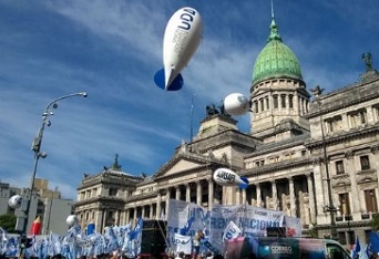 Diversas agrupaciones de gremios docentes y otros tantos maestros particulares llegaron al Congreso para realizar una manifestación en defensa del paro de 48 horas a raíz del conflicto por las paritarias con el Gobierno nacional.