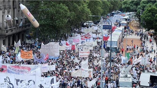 En el marco de un paro nacional de 48 horas, antes del mediodía se empezó a poblar la Plaza con tres grandes columnas provenientes de la Patagonia, de Cuyo y del Nordeste (NEA) y Noroeste argentino (NOA), además de manifestantes que cruzaron el Puente Pueyrredón y del oeste y norte bonaerense.