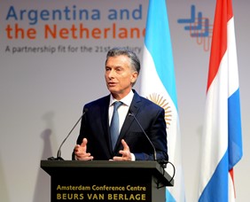 El presidente argentino habló ante 250 empresarios holandeses y agradeció la "posibilidad de interactuar" con el objetivo de "analizar las enormes oportunidades que surgen en esta etapa de Argentina" "Mi prioridad es reducir la pobreza en mi país, que hoy alcanza a un tercio de la población y eso se logra generando trabajo; y para generar trabajo hay que lograr inversión; y para lograr inversión hay que lograr confianza, que se logra estableciendo reglas de juego claras, respetándolas, diciendo la verdad y siendo previsibles", expresó el mandatario argentino.