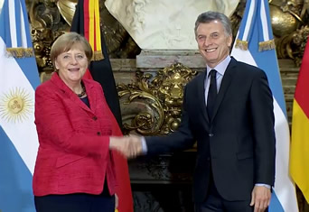 "Mi primera visita como canciller tiene lugar en un momento en que el presidente Macri ha generado la reapertura del país a los mercados financieros después de un largo período en el que no tuvo acceso", declaró Merkel tras una reunión con ejecutivos de empresas alemanas en un lujoso hotel de Buenos Aires.