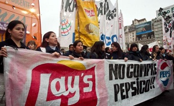 Trabajadores despedidos de PepsiCo y militantes de partidos de izquierda realizan un piquete en la intersección de las avenidas Pellegrini y Corrientes, a metros del Obelisco. La movilización afecta la circulación del Metrobus.