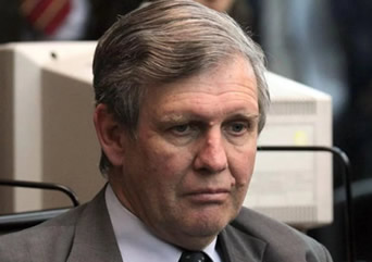 El ex capitán de fragata Alfredo Astiz, conocido como el "ángel de la muerte" y condenado a cadena perpetua por violaciones a los derechos humanos durante la dictadura argentina de 1976 a 1983, asiste a la audencia de un nuevo juicio en su contra (Foto AP).