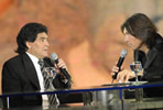 Vestido con un traje negro, camisa blanca y una corbata al tono, Maradona lució muy calmo y muy sereno ante las preguntas del conductor.